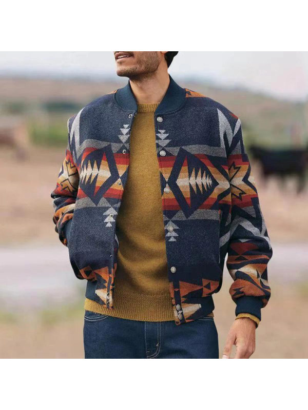 Shirt Jacs,Men's Vintage Ethnic Print Thermal Hooded Casual Jacket
